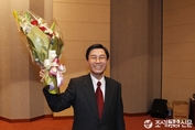 (조세금융신문=전한성 기자) 24일 서울 강남구 건설회관에서 진행된 한국관세사회 회장선거에서 기호 2번 안치성 후보가 총 1413표의 유효투표 중 727표를 얻어 제23대 회장으로 선출된 가운데 꽃다발을 들고 기뻐하고 있다.