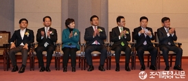 (조세금융신문=전한성 기자) 향후2년간1750여관세사들을이끌어갈한국관세사회장선거가열리는 '제39차 한국관세사회 정기총회'가 24일 오후 2시 서울 강남구 논현동 건설회관에서개최된 가운데 총회에 참석한 내빈들이 박수를 치고 있다.왼쪽부터 정의당 박원석 의원, 새누리당 류성걸 의원, 새정치민주연합 김현미·윤호중 의원, 새누리당 강석훈·김광림 의원, 관세청 이돈현 차장.