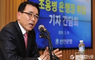 (조세금융신문=전한성 기자)조용병 신임 신한은행장이 18일 오후 3시 서울 중구 세종대로 소재 신한은행 본점에서 취임식을 가진 가운데 취임식 후기자간담회에서 기자들의 질문에 답하고 있다.조 행장은 취임식에서 ‘흔들림 없는 리딩뱅크의 위상 확립’, ‘World Class Bank로 도약하기 위한 기반 구축’, ‘자랑스러운 신한문화 계승 발전’의 3대 경영 방침을 밝혔다.