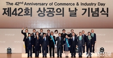 (조세금융신문=전한성 기자) '제42회 상공의 날 기념식'이 18일 오전 서울 강남구 삼성동 코엑스에서 열린 가운데행사에 참석한 내빈들과 수상자들이 기념촬영을 하고 있다.이 자리엔 이 총리를 비롯해 윤상직 산업통상자원부 장관, 박용만 대한상공회의소 회장, 김인호 한국무역협회 회장 등 1000여명이 참석했고, 현정은 현대그룹 회장과 조성제 비아이피㈜ 대표이사가 금탑산업훈장을 수상했다.