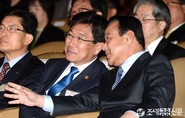 (조세금융신문=전한성 기자) '제42회 상공의 날 기념식'이 18일 오전 서울 강남구 삼성동 코엑스에서 열린 가운데이완구 국무총리와 윤상직 산업통상자원부 장관이 귀엣말을 나누고 있다.이 자리엔 이 총리를 비롯해 윤상직 산업통상자원부 장관, 박용만 대한상공회의소 회장, 김인호 한국무역협회 회장 등 1000여명이 참석했고, 현정은 현대그룹 회장과 조성제 비아이피㈜ 대표이사가 금탑산업훈장을 수상했다.