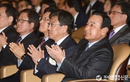 (조세금융신문=전한성 기자) '제42회 상공의 날 기념식'이 18일 오전 서울 강남구 삼성동 코엑스에서 열린 가운데이완구 국무총리가 박수를 치고 있다.이 자리엔 이 총리를 비롯해 윤상직 산업통상자원부 장관, 박용만 대한상공회의소 회장, 김인호 한국무역협회 회장 등 1000여명이 참석했고, 현정은 현대그룹 회장과 조성제 비아이피㈜ 대표이사가 금탑산업훈장을 수상했다.