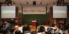 (조세금융신문) 윤경SM포럼이 주최한‘윤리경영포럼 2015 CEO 서약식’이 17일 오전 10시 서울 중구 태평로 프레스센터에서 열린 가운데 신창재 교보생명 회장이 기조연설을 하고 있다.