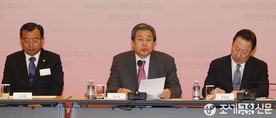 (조세금융신문=전한성 기자) 임환수 국세청장이 17일 오전 서울 중구 남대문로 대한상공회의소를 찾아 전국상의 회장단과의 정책간담회를 가진 가운데 박용만 대한상공회의소 회장이 인사말을 하고 있다.