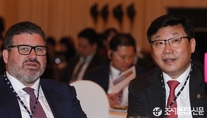 (조세금융신문=전한성 기자) 도이치뱅크가 주최한 '중국 위안화 세미나'가 13일 오전 서울 중구 태평로 플라자호텔에서 열린 가운데 주형환 기획재정부 제1차관과 알란 클로티(Alan Cloete) 도이치뱅크그룹 아시아 태평양 지역 공동 최고경영자가 대화를 나누고 있다.