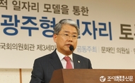 (조세금융신문) 새정치민주연합 민주정책연구원과 문재인 의원실에서 주최한 '소득주도 성장과 광주형 일자리' 토론회가 10일 오후 서울 여의도 국회 의원회관에서 열린 가운데 새정치민주연합 김동철 국회 산업통상자문위원회 위원장이 축사를 하고 있다.