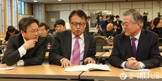 (조세금융신문) 새정치민주연합 민주정책연구원과 문재인 의원실에서 주최한 '소득주도 성장과 광주형 일자리' 토론회가 10일 오후 서울 여의도 국회 의원회관에서 열린 가운데 문재인(오른쪽부터), 민병두, 강기정 의원이 대화를 나누고 있다.