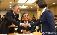 (조세금융신문) 새정치민주연합 민주정책연구원과 문재인 의원실에서 주최한 '소득주도 성장과 광주형 일자리' 토론회가 10일 오후 서울 여의도 국회 의원회관에서 열린 가운데 문 대표가 추미애 새정치민주연합 최고위원과 악수 나누고 있다.