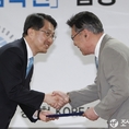 (조세금융신문=전한성 기자) 제332회 국회(임시회) 제5차 본회의가 14일 오전 10시에 개의된 가운데 이완구(왼쪽) 국무총리가 정의화 국회의장과 악수 나누고 있다.오늘 본회의에선 외교·통일·안보에 관한 대정부 질문과 아베 정부의 독도 영유권 침탈 및 고대사 왜곡에 대한 규탄 결의안이 의결될 예정이다.