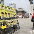 (조세금융신문=전한성 기자) '세월호 참사 1주기'를 앞둔 13일 오후, 서울 광화문광장에 희생자 유가족들이 9명의 실종자들의 사진이 붙어있는 피켓을 들고 세월호 인양을 촉구하고 있다.