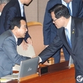 (조세금융신문=전한성 기자) 제332회 국회(임시회) 제5차 본회의가 14일 오전 10시에 개의된 가운데 새누리당 유승민 원내대표가 새정치민주연합 박병석 의원과 대화 나누고 있다.오늘 본회의에선 외교·통일·안보에 관한 대정부 질문과 아베 정부의 독도 영유권 침탈 및 고대사 왜곡에 대한 규탄 결의안이 의결될 예정이다.