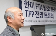 (조세금융신문) TPP-FTA 대응 범국민대책위원회(구 한미 FTA 저지 범국민운동본부)가 주최한 '한미 FTA 발효 3년 평가 및 TPP 전망 토론회'가 9일 오후 서울 여의도 국회 의원회관에서 열린 가운데 박석운 한국진보연대 공동대표가 인사말을 하고 있다.