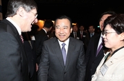 (조세금융신문) 한국경제TV와 한경미디어그룹이 주최한 '2015 세계 경제·금융 컨퍼런스'가 9일 오후 서울 그랜드하얏트 호텔에서 개막한 가운데 박원순 서울시장이 행사에 참석한 내빈과 대화를 나누고 있다.올해로 7회째를 맞은 세계 경제·금융 컨퍼런스는 광복 70주년을 맞아 '통일, 한국 경제의 길을 묻다'라는 주제로 이틀간 진행되며, 이완구 국무총리, 박원순 서울시장, 진웅섭 금융감독원장, 최경수 한국거래소 이사장, 김낙회 관세청장 등 경·재계 관계자 300여명이 참석했다.