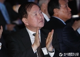 (조세금융신문) 한국경제TV와 한경미디어그룹이 주최한 '2015 세계 경제·금융 컨퍼런스'가 9일 오후 서울 그랜드하얏트 호텔에서 개막한 가운데 하영구 전국은행연합회장이 박수를 치고 있다.올해로 7회째를 맞은 세계 경제·금융 컨퍼런스는 광복 70주년을 맞아 '통일, 한국 경제의 길을 묻다'라는 주제로 이틀간 진행되며, 이완구 국무총리, 박원순 서울시장, 진웅섭 금융감독원장, 최경수 한국거래소 이사장, 김낙회 관세청장 등 경·재계 관계자 300여명이 참석했다.