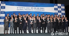 (조세금융신문) 한국경제TV와 한경미디어그룹이 주최한 '2015 세계 경제·금융 컨퍼런스'가 9일 오후 서울 그랜드하얏트 호텔에서 개막한 가운데 행사에 참석한 내빈들이 기념촬영을 하고 있다.올해로 7회째를 맞은 세계 경제·금융 컨퍼런스는 광복 70주년을 맞아 '통일, 한국 경제의 길을 묻다'라는 주제로 이틀간 진행되며, 이완구 국무총리, 박원순 서울시장, 진웅섭 금융감독원장, 최경수 한국거래소 이사장, 김낙회 관세청장 등 경·재계 관계자 300여명이 참석했다.