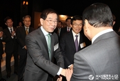 (조세금융신문) 한국경제TV와 한경미디어그룹이 주최한 '2015 세계 경제·금융 컨퍼런스'가 9일 오후 서울 그랜드하얏트 호텔에서 개막한 가운데 박원순 서울시장이 이완구 국무총리와 악수 나누고 있다.올해로 7회째를 맞은 세계 경제·금융 컨퍼런스는 광복 70주년을 맞아 '통일, 한국 경제의 길을 묻다'라는 주제로 이틀간 진행되며, 이완구 국무총리, 박원순 서울시장, 진웅섭 금융감독원장, 최경수 한국거래소 이사장, 김낙회 관세청장 등 경·재계 관계자 300여명이 참석했다.