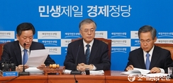 (조세금융신문=전한성 기자) 새정치민주연합 최고위원회의가 9일 오전 9시 서울 여의도 국회 대표회의실에서 열린 가운데 문재인 대표가 주승용 최고위원의 발언을 듣고 있다.문 대표는 모두발언에서"마침내 정부와 여당이 최저임금 인상을 말하기 시작했다. 환영한다"며 "말로만 끝나선 안 될 것이고 무엇보다 중요한 건 최저임금을 법제화하는 것"이라고 밝혔다.