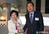 (조세금융신문=전한성 기자)한국여성세무사회가5일오후 서울 삼성동서울컨벤션3층일루미나홀에서‘여성세무사들과함께하는세금가이드’의출판기념회를개최한 가운데 김귀순 회장과 백운찬 전 관세청장이 악수를 나누고 있다.