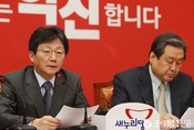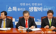 (조세금융신문) 새누리당 최고위원회의가 5일 오전 9시 서울 여의도 국회 대표최고위원실에서 열린 가운데유승민 원내대표가 모두발언을 하고 있다.유 원내대표는 발언에서 전 날 최경환 경제부총리가 최저임금을 상당 폭 인상하겠다는 발언을 두고 "최경환 부총리가 최저임금 인상으로 정책 방향을 전환한 것은 디플레이션에 대한 대응 뿐 아니라 사회 양극화를 해소하는 수단이 될 수 있고, 저임금 근로자 비중을 줄일 수 있기 때문에 일단 이 같은 발언을 환영한다"고 밝혔다.