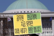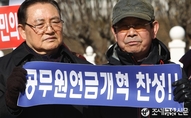 (조세금융신문=전한성 기자) 세금바로쓰기 납세자운동본부가 4일 오전 11시 서울 여의도 국회의사당 앞에서 '공무원연금개혁 촉구 기자회견'을 연 가운데 기자회견에 참석한 회원들이 '공무원연금개혁 찬성' 피켓을 들고 있다.