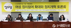 (조세금융신문) 정의당이 주최한 '3.8 세계 여성의 날 기념 기획토론회-여성 정치참여 확대와 정치 개혁'이 4일 오전 10시 서울 여의도 국회 의원회관에서 열린 가운데 심상정 정의당 원내대표가 발언을 하고 있다. 심 원내대표는 "정의당은 '여성의 당'이다"며 "성 평등과 여성의 정치참여를 활성화 할 수 있도록 정의당은 모든 노력을 기울여 나갈 것"이라고 밝혔다.