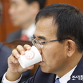 (조세금융신문=전한성 기자) 국회 기획재정위원회의 전체회의가 20일 오전 서울 여의도 국회에서 열린 가운데 김낙회 관세청장이 목을 축이고 있다.