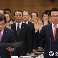(조세금융신문=전한성 기자)농협경제지주에대한 국회 농림축산식품부해양수산위원회의 국정감사가 7일 서울 중구 새문안로 농협중앙회에서 열린 가운데 이상욱(오른쪽) 농업경제대표이사, 이기수 축산경제대표이사가 증인선서를 하고 있다.
