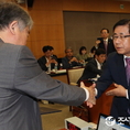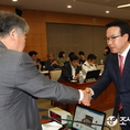 (조세금융신문=전한성 기자)농협경제지주에대한 국회 농림축산식품부해양수산위원회의 국정감사가 7일 서울 중구 새문안로 농협중앙회에서 열린 가운데 이기수 축산경제대표이사가 김우남 위원장과 악수 나누고 있다.