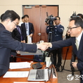 (조세금융신문=전한성 기자) 한국투자공사·국제원산지정보원에 대한 국회 기획재정위원회의 국정감사가 2일 서울 여의도 국회에서 열린 가운데 김기영(오른쪽) 국제원산지정보원장이 정희수 위원장과 악수 나누고 있다.