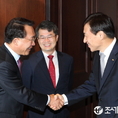 (조세금융신문=전한성 기자) '경제동향간담회'가 23일 오전 서울 중구 한국은행 본관에서 열린 가운데 이주열(오른쪽) 한국은행 총재가 참석자와 악수 나누고 있다.