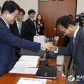 (조세금융신문=전한성 기자) 관세청, 조달청, 통계청 등에 대한 국회 기획재정위원회의 국정감사가 18일 서울 여의도 국회에서 열린 가운데 김낙회(오른쪽) 관세청장이 정희수 위원장과 악수 나누고 있다.