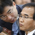 (조세금융신문=전한성 기자) 관세청, 조달청, 통계청 등에 대한 국회 기획재정위원회의 국정감사가 18일 서울 여의도 국회에서 열린 가운데 유경준(왼쪽) 통계청장이 김낙회 관세청장과 귀엣말을 나누고 있다.