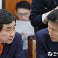(조세금융신문=전한성 기자) 금융위원회에 대한 국회 정무위원회의 국정감사가 14일 서울 여의도 국회에서 열린 가운데 새정치민주연합 이종걸(왼쪽) 원내대표와 이학영 의원이 대화 나누고 있다.