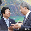 (조세금융신문=전한성 기자) 금융위원회에 대한 국회 정무위원회의 국정감사가 14일 서울 여의도 국회에서 열린 가운데 임종룡(오른쪽) 금융위원장이 새정치민주연합 박병석 의원과 대화 나누고 있다.