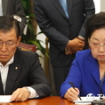 (조세금융신문=전한성 기자) 새누리당 최고위원회의가 3일 오전 서울 여의도 국회 대표회의실에서 열린 가운데 황진하(왼쪽) 사무총장과 김을동 최고위원이 자료를 살피고 있다.