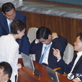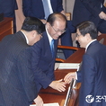 (조세금융신문=전한성 기자) 새정치민주연합 이종걸원내대표의 국정에 관한 교섭단체대표연설이 있을제337회 국회(정기회) 제3차 본회의가 3일 오전 개의된 가운데 황교안(오른쪽부터) 국무총리와 황우여 사회부총리 겸 교육부장관, 주형환 기획재정부 제1차관이 밝은 표정으로 대화 나누고 있다.