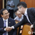 (조세금융신문=전한성 기자) 제336회 국회(임시회) 제2차 기획재정위원회 전체회의가 27일 오후 서울 여의도 국회에서 개의된 가운데 김낙회(왼쪽) 관세청장이 기획재정부 문창용 세제실장과 악수 나누고 있다.오늘 전체회의에선 기획재정부, 국세청, 관세청의 2015∼2019년 국가재정운용계획 수립방향 및 세수실적 보고가 있을 예정이다.