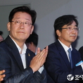 (조세금융신문=전한성 기자) '주빌리은행 출범식'이 27일 오전 서울시청 시민청에서 열린 가운데 이재명(왼쪽, 현 성남시장), 유종일 공동은행장이 박수를 치고 있다.주빌리은행은 암암리에 사고 팔리는 장기 연체자들의 부실채권을 사들여 서민들의 부채를 탕감하려는 목적으로 설립됐다.