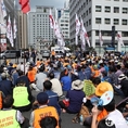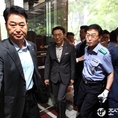 (조세금융신문) KB국민은행 노조원들의 이건호 국민은행장 출근저지 투쟁이 3일째 이어졌다. 이 날 8시 20분경 출근한 이건호 행장을 향해 노조원들은 사퇴하라는 구호를 외쳤지만 청원경찰들에 둘러싸인 이건호 행장의 출근을 막진 못했다.한편, KB노조원들은 임영록 KB금융지주 회장과 이건호 국민은행장이 동반 사퇴할 때 까지 투쟁을 벌이겠다고 밝혔다. "이건호 행장은 사퇴하라"라고 구호를 외치는 노조원들 출근하는 이건호 국민은행장 청원경찰들과 대치중인 노조원들 청원경찰의 경호를 받으며 사무실로 향하는 이건호 행장