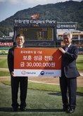 (조세금융신문=최일혁 기자) 한화방산4社인 ㈜한화(대표이사 이태종), 한화테크윈·한화디펜스(대표이사 신현우), 한화탈레스(대표이사 장시권)는 25일 대전 한화생명 이글스파크에서 열린 홈경기에서 국가유공자와 군 장병 및 그 가족 등과 함께 ‘호국보훈’의 정신을 기리는 홈경기 초청 행사를 가졌다. 이 날 행사는 ‘6.25 한국전쟁’의 날을 맞아 국가유공자의 희생과 헌신에 감사 드리고 군 장병들과 함께 나라사랑 정신을 고양하고자 마련됐다. 행사에는 ㈜한화 이태종 대표이사, 이명현 대전보훈청장 등이 참석했으며 국가유공자 110여 명, 육·해·공군 장병과 그 가족 450여 명 등 총 560여 명이 함께했다. ‘나라사랑’의 의미를 되새기고자 경기 시작 전부터 다양한 행사들이 이어졌다. 먼저 ㈜한화 이태종 대표이사는 ‘호국보훈’의 마음을 담아 대전보훈청에 3천만원의 성금을 전달했으며, 이날 경기장을 찾은 관람객 모두는 경건한 마음을 담아 순국선열과 호국영령에 대해 묵념도 진행했다. 뜻깊은 초청행사에 걸맞은 특별한 시구도 이어졌다. 현재 해군에서 근무중인 천안함 생존 장병 정다운 대위는 대한민국의 군인으로서 직접 시구를 진행했으며, 관람객들은 격려의 박수를 아끼지 않