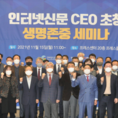 (조세금융신문=홍채린 기자) 인터넷신문위원회는 15일 프레스센터 20층 내셔널프레스클럽에서 한국생명존중희망재단과 공동으로 ‘인터넷신문 콘텐츠와 생명존중'을 주제로 세미나를 열었다. 이번 세미나는 자살예방 및 생명존중 의제와 관련한 인터넷언론의 역할과 가치에 대해 재조명하는 자리로 마련됐으며 서강대 유현재 교수(커뮤니케이션학부)의 특강으로 진행됐다. 행사에는 인신위 참여서약 매체 대표 30여명이 참석했다. [조세금융신문(tfmedia.co.kr), 무단전재 및 재배포 금지]