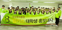 (조세금융신문) 한국투자증권이 여의도 본사에서 ‘제8기 뱅키스 대학생 홍보대사’ 발대식을 갖고 4개월간의 대장정을 시작한다고 2일 밝혔다.한국투자증권 ‘제8기 뱅키스 대학생 홍보대사’는 지난 3월, 주식 및 금융에 관심 있는 열정적인 전국 대학생을 대상으로 캠퍼스 홍보대사와 온라인 홍보대사 두 부문으로 모집해 최종 41명이 선발됐다. 이들은 오는 10월까지 방학기간을 제외한 약 4개월간 한국투자증권에서 뱅키스 서비스 체험과 브랜드 가치 알리기 등에 참여하게 된다.뱅키스 대학생 홍보대사 전원에게는 일정액의 활동비와 홍보물품이 지급된다. 또 금융교육 및 현직 증권사 직원과의 만남을 통해 금융지식을 키우고, 단체워크숍과 사회공헌활동을 포함한 다양한 사회경험을 쌓을 수 있는 기회가 주어진다. 아울러 한국투자증권 뱅키스 대학생 홍보대사활동을 수료한 전원에게는 수료증이 수여되며, 우수 활동자에게는 장학금지급과 한국투자증권 입사 지원시 가산점이 부여되는 혜택이 있다.이석로 eBusiness본부장은 “금융에 대한 열정과 젊은 패기로 무장한 대학생들이 뱅키스 홍보대사 활동을 통해 참신한 아이디어를 발산하며 뱅키스를 더욱 젊고 특별하게 만들어 줄 것으로 기대한다”라고 말했다.