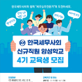 (조세금융신문=이지한 기자) 한국세무사회(회장 구재이)가 직접 교육하여 믿을 수 있는 세무 실무 전문가로 양성하는 '신규직원 양성학교'가 4기 교육생 모집을 실시한다. '신규직원 양성학교'는 한국세무사회가 직접 세무사무원을 양성하기 위해 창설한 실무 중심의 교육프로그램으로 세무사 사무소 근무에…