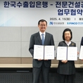 (조세금융신문=이정욱 기자) 한국수출입은행, 전문건설공제조합, 해외건설협회가 15일 해외건설협회 대회의실에서 중소기업의 해외 진출 지원을 위한 3자 업무협약(MOU)을 체결했다. 이번 협약은 중소기업의 글로벌 시장 진출을 돕기 위해 ▲해외건설 사업정보 및 교육과정 공유·협업 ▲이행성 보증과 교육 지원 등에서 상호 협력을 강화하는 것을 목표로 한다. 해외건설협회 한만희 회장은 “국내 건설 경기 침체로 인한 어려움을 극복하고, 중소기업의 글로벌 경쟁력 강화를 위해 이번 협약이 중요한 출발점이 될 것”이라고 밝혔다. 전문건설공제조합 이은재 이사장은 “세 기관의 강점을 살려 건설업체의 해외 진출과 금융 솔루션 제공을 위해 신뢰 기반의 협력을 이어가길 바란다”고 말했다. 한국수출입은행 윤희성 행장은 “정보 공유 활성화와 중소기업 역량 강화를 위해 최선을 다하겠다”고 강조했다. 세 기관은 이번 협약을 계기로 중소기업의 애로사항을 적극적으로 청취하고, 핵심 사업정보 제공 및 이행성 보증 활성화를 위한 방안을 마련해 나갈 계획이다. [조세금융신문(tfmedia.co.kr), 무단전재 및 재배포 금지]