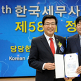 (조세금융신문=김용진 기자) 이창식 한국세무사고시회 총무 부회장이 30일 오후 한국세무사회 회관에서 열린 제58회 한국세무사회 정기총회에서 원경희 한국세무사회 회장으로부터 고용노동부 장관상 수상을 하고 있다. [조세금융신문(tfmedia.co.kr), 무단전재 및 재배포 금지]