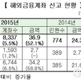 (조세금융신문=나홍선 기자) 2015년 해외금융계좌 신고 결과 826명이 총 36조9천억 원을 신고, 전년대비 신고인원은 6.7%, 신고금액은 52.1% 증가한 것으로 나타났다.3일 국세청에 따르면, 2015년 해외금융계좌 신고인원은 826명으로 전년(774명)보다 52명이 늘었으며, 신고계좌 수는 8337개, 신고금액은 36조 9천억 원으로 전년(24조3천억원)보다 12조6천억원(52.1%↑) 증가했다.신고인원 중 개인의 경우 총 412명이 1593개 계좌, 2조 7천억 원을 신고, 전년보다 신고인원이 5.9% 증가(금액은 전년 수준)했다.법인의 경우에는 총 414개 법인이 6744개 계좌, 34조 2천억 원을 신고, 전년보다 인원수는 7.5%, 금액은 58.8% 증가했다.신고금액을 구체적으로 보면, 개인 1인당 평균 신고금액은 65억 원이었으며, 법인 1개당 평균 신고금액은 827억 원이었다.금액대별로는 개인의 경우 신고금액 20억 원 이하가 174명(42.2%)으로 가장 많았고, 50억 원 초과자는 전체의 27.4%인 113명이었다.반면 법인은 50억 원 초과가 247개로 전체의 59.7%로 가장 많았다..전체 신고금액 중 예·적금 계좌의 금액은 26조