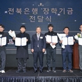 (조세금융신문=송기현 기자) JB금융그룹 전북은행은 전북애향장학재단과 함께 2025학년도 애향장학생 23명에게 총 1억원 상당의 장학 증서를 수여했다고 1일 밝혔다. 전북은행은 도내 출신 대학 신입생에게 지역 발전 인재로 성장하도록 전북애향장학재단을 통해 매년 장학금을 지원하고 있다. 1992년부터 올해까지 지급한 장학금은 총 17억5천만원이다. 윤석정 재단 이사장은 "매년 대학 신입생과 성적 우수 재학생에게 장학금을 지급하도록 전북은행의 꾸준한 지원이 큰 버팀목이 되고 있어 감사하다"고 말했다. [조세금융신문(tfmedia.co.kr), 무단전재 및 재배포 금지]