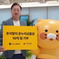 (조세금융신문=송기현 기자) 인터넷전문은행 카카오뱅크는 8일 다가올 추석을 맞아 취약계층 지원·전통시장 활성화를 위해 10억원의 온누리상품권을 사랑의열매 사회복지공동모금회에 기부한다고 밝혔다. 윤호영 카카오뱅크 대표는 "앞으로도 사회적 책임을 다하고 더 나은 사회를 만드는 데 기여할 수 있도록 노력하겠다"고 다짐했다. [조세금융신문(tfmedia.co.kr), 무단전재 및 재배포 금지]