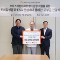 (조세금융신문=구재회 기자) 롯데칠성음료는 1일 어린이 재활치료시설인 '보바스어린이재활센터'의 운영 지원을 위해 ESG(환경·사회·지배구조) 매대 운영 수익금 8천만원을 롯데의료재단에 기부했다고 밝혔다. 보바스어린이재활센터는 롯데의료재단이 운영하는 시설로, 뇌성마비와 발달 지연 등 재활이 필요한 아동 환자에게 통합 치료 서비스를 제공한다. [조세금융신문(tfmedia.co.kr), 무단전재 및 재배포 금지]