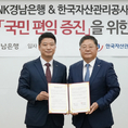 (조세금융신문=송기현 기자) BNK경남은행은 18일 한국자산관리공사(캠코)와 국유재산을 이용하는 국민 편익 증진을 위한 업무협약을 맺었다고 밝혔다. BNK경남은행에 따르면 협약에 따라 두 기관은 ▲국유재산을 이용하는 국민의 경제적 부담 완화 ▲국민 편의 제고를 위한 정보 인프라 협력 ▲사회공헌활동 등 사회적 가치 창출 및 ESG(환경·사회·지배구조) 경영 이행 등을 위해 노력하기로 했다. BNK경남은행은 국유재산 매수인들에게 금리를 우대해주는 금융상품도 조만간 출시하기로 했다. 박상호 여신영업본부 상무는 "이번 협약이 국유재산 가치 제고와 국민 편익 증진에 도움이 될 것으로 기대한다"며 "앞으로도 지역경제에 활력을 불어넣을 수 있도록 최선을 다하겠다"고 강조했다. [조세금융신문(tfmedia.co.kr), 무단전재 및 재배포 금지]